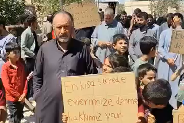 ورفع الأهالي شعارات تندد باستيلاء القوات التركية على منازل المدنيين في المنطقة، مؤكدين على حقهم في استعادة ممتلكاتهم، وسط حالة من التوتر الشعبي المتصاعد ضد الوجود التركي في جبل الزاوية.