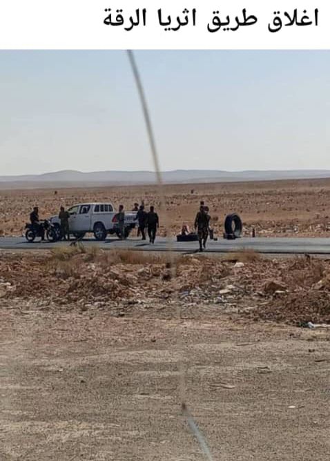 وذكرت مصادر محلية أن قوات السلطة الانتقالية أقامت سواتر ترابية على الطريق، ما أدى إلى توقف عشرات الحافلات عند مدخل الطريق في مدينة الطبقة.