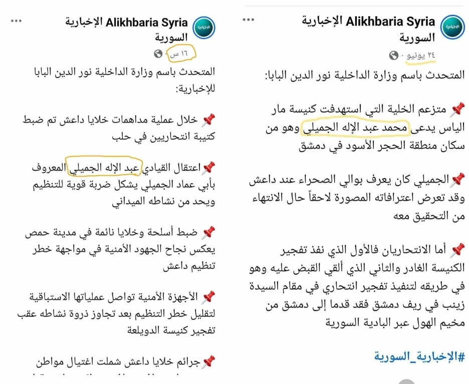 مساء أمس ادعت وزارة الداخلية التابعة للسلطة الانتقالية، عبر المتحدث باسمها نورالدين البابا، أنها أطلقت عملية أمنية ضد خلايا تنظيم الدولة الإسلامية “دا*عش”، في عدد من المحافظات السورية، مشيرةً إلى إنها اعتقلت عدداً من خلايا التنظيم.