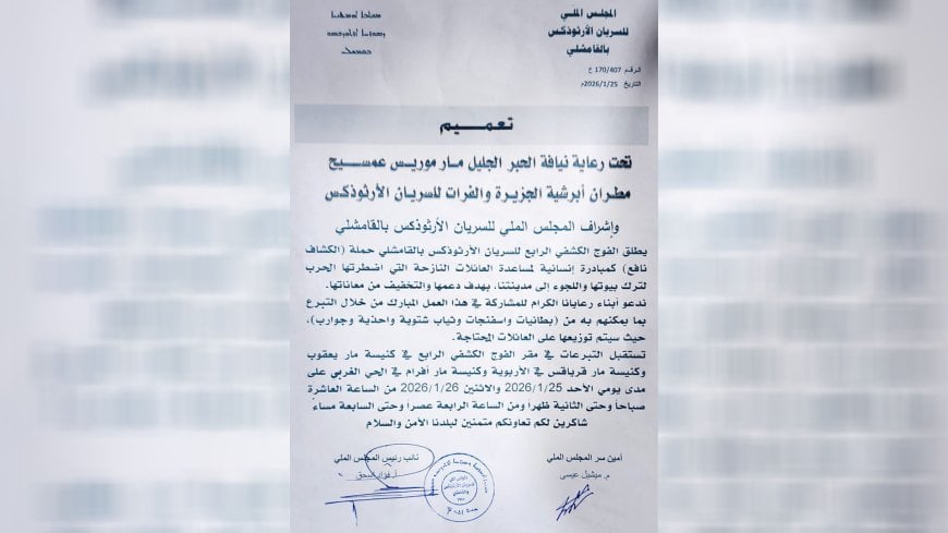 هذا وتستقبل التبرعات في مقر الفوج الكشفي الرابع في كنيسة مار يعقوب، وكنيسة مار قرياقس في الأربوية، وكنيسة مار أفرام في الحي الغربي، وذلك على مدى يومي الأحد 25-26 كانون الثاني 2026، من الساعة العاشرة صباحاً حتى الثانية ظهراً، ومن الرابعة عصراً حتى السابعة مساء.