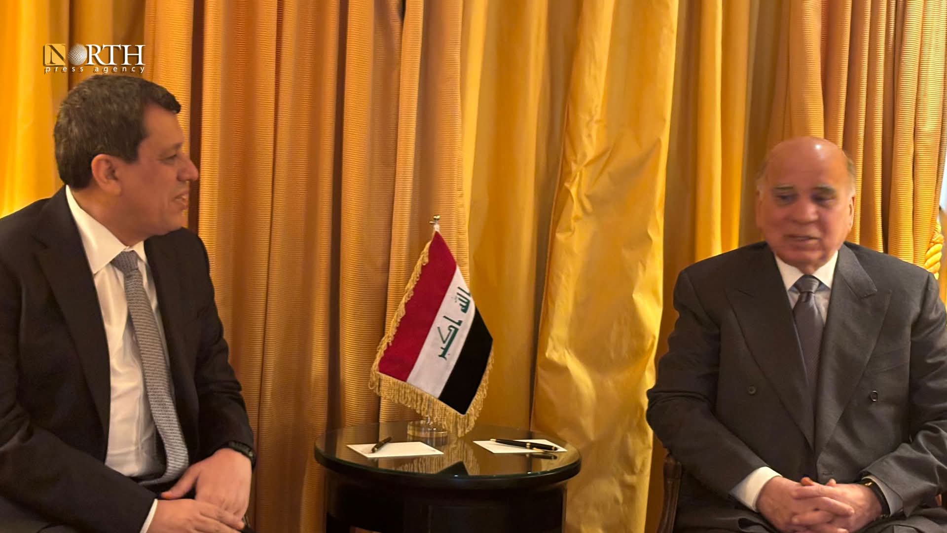 التقت الرئيسة المشتركة لدائرة العلاقات الخارجية في الإدارة الذاتية، إلهام أحمد، والقائد العام لقوات سوريا الديمقراطية، مظلوم عبدي، مع وزير الخارجية العراقي، فؤاد حسين، على هامش مؤتمر ميونخ للأمن.