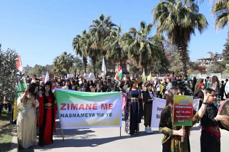 ونظّمت مؤسسة اللغة الكردية وإدارة المدارس في مدينة الدرباسية، مسيرة شارك فيها المعلمون والمعلمات وأعضاء المؤسسات المدنية والمجالس في المدينة.