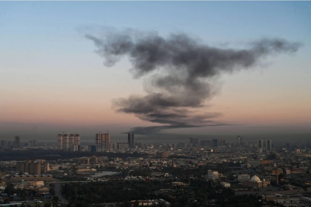 دوت انفجارات قوية في مدينة أربيل/هولير، عاصمة إقليم كردستان، جراء تصدي منظومة الدفاعات الجوية لسرب من الطائرات المسيرة التي هاجمت المدينة في إطار الحرب المستمرة بين إيران من جهة والولايات المتحدة الأمريكية وإسرائيل من جهة أخرى.