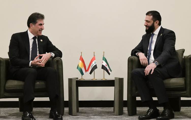 أجرى رئيس إقليم كردستان نيجيرفان بارزاني اتصالاً هاتفياً مع الرئيس السوري الانتقالي أحمد الشرع لمناقشة مستجدات الحــرب في المنطقة.